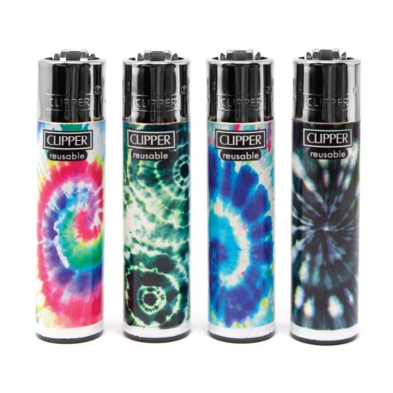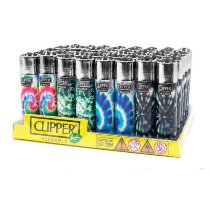 DESCRIPTION: Tray of Clipper lighters with various designs. Clipper lighters are refillable and reflintable.
